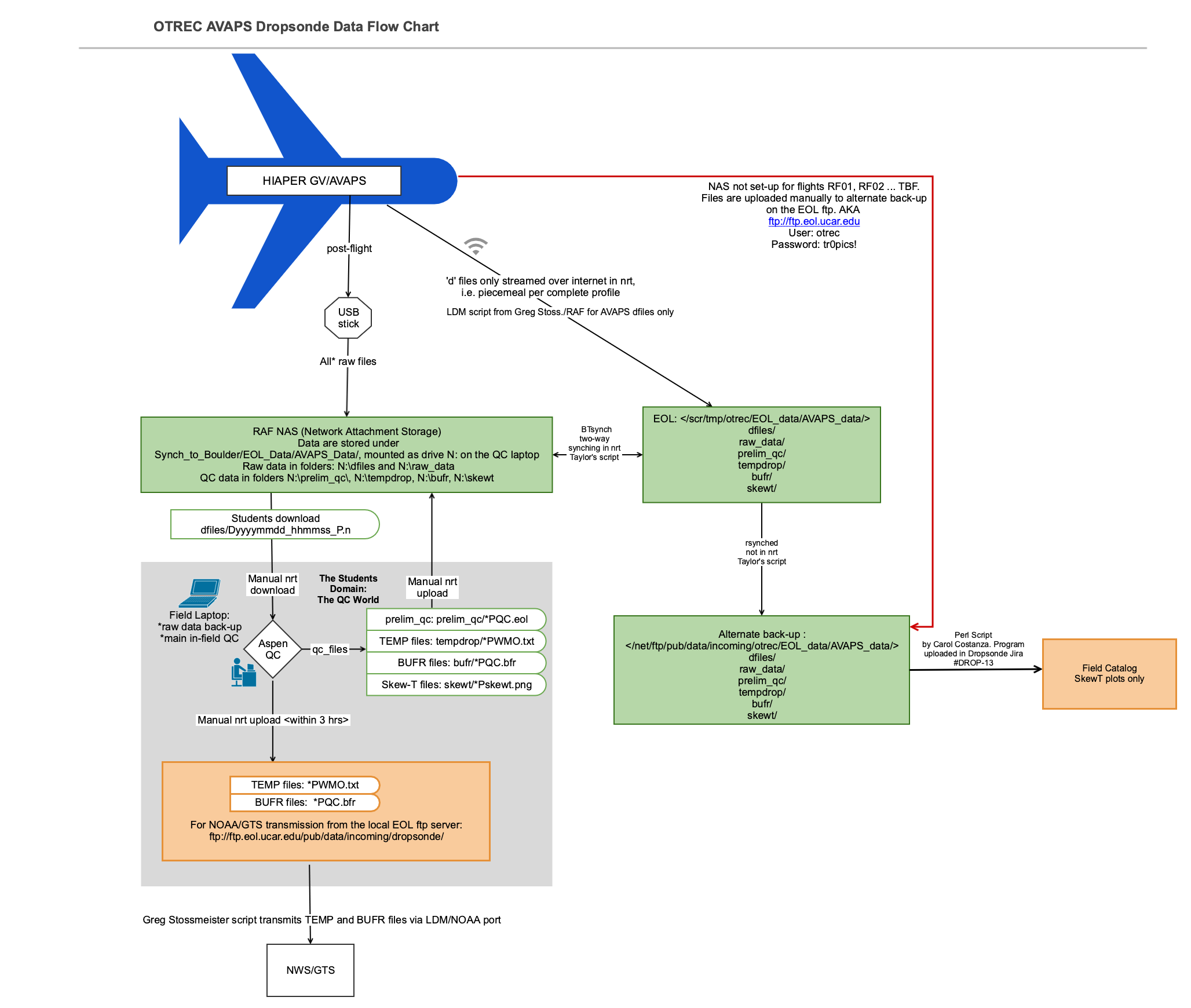 The sounding QC laptop will have a drive letter N: configured, which points to Synch_to_Boulder\EOL_data\AVAPS_data\ on the NAS in the operations center. This way the drive N: will only show the folder \dfiles, \prelim_qc, \tempdrop, \bufr, \skewt, and \raw_data. These folders will be synced to Boulder.