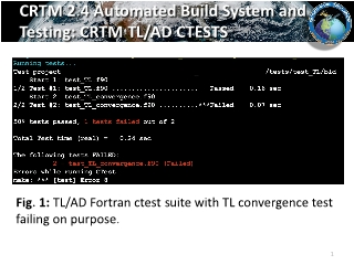 | - CRTM TL/AD CTESTS - Side note: Convergence tests may pass or fail depending on the compiler (pass for ifort and fail for gcc) - Transmittance coefficient package: VIIRUS comparison (data from the default, Yingtao, and Patrick) - Improvements for UMBC profiles. (In the troposphere, the difference is quite significant) - Possible explanations for the differences: mismatching training profiles (ECMWF83 vs. UMBC48)? SRF influence? No ODAS merge with ODPS for water line absorptions. Unknown unknows. Mismatching set of training absorbers. Different absorbers?
